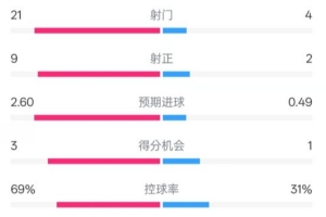云开体育-巴萨4-1赫罗纳全场数据:射门21-4,射正9-2,控球率69%-31%